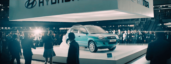 On remonte ainsi le temps au travers des années 2000 avec l’évocation du lancement du Hyundai Tucson, le best-seller de la marque. Son dévoilement dans des effets de drapé, renvoie à la fois à un grand classique de l’histoire de l’art et n’est pas sans rappeler une certaine idée de la photographie de mode.