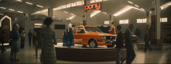 Pour finir la partie de l’histoire liée à la branche automobile de la marque coréenne. On est replongé dans les années 70, avec le lancement de l’icône absolue de l’automobile coréenne, la Hyundai Pony, le premier modèle 100% coréen. Le coup de flash qui fait la transition de la séquence nous autorise si on avait encore des doutes à voir dans ce film un jeu de piste photographique.