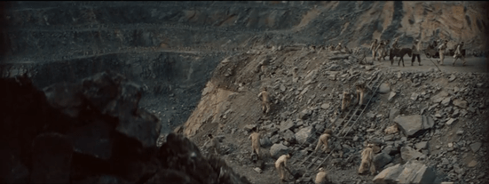 Comment ne pas voir dans scène est une grandiose reconstitution de la Serra Pelada du Gold de Sebastiao Salgado