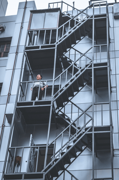 La volée d’escaliers bordée d’éclairs qui déchirent l’arrière plan et soulignent la tension extrême de la scène.